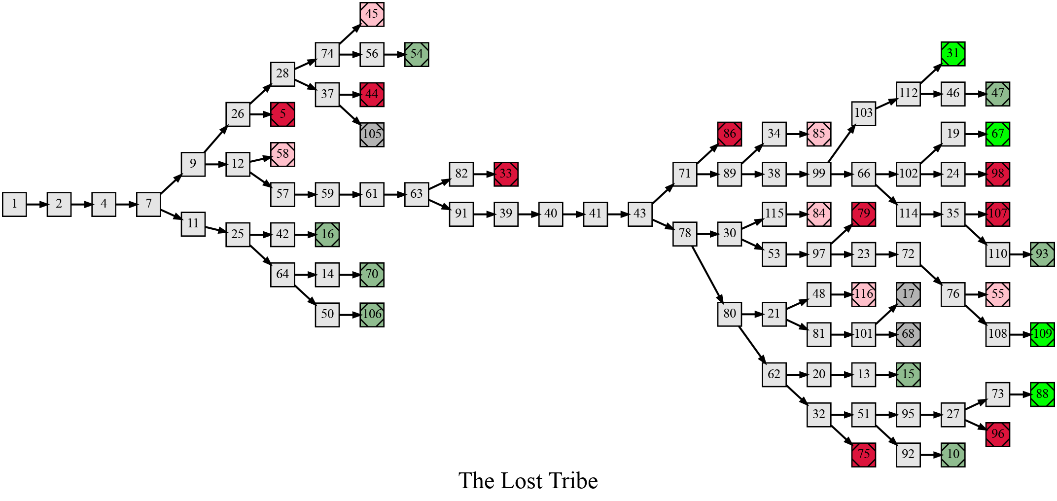 | Longest path (2) | 24: [1, 2, 4, 7, 9, 12, 57, 59, 61, 63, 91, 39, 40, 41, 43, 78, 80, 62, 32, 51, 95, 27, 73, 88] |