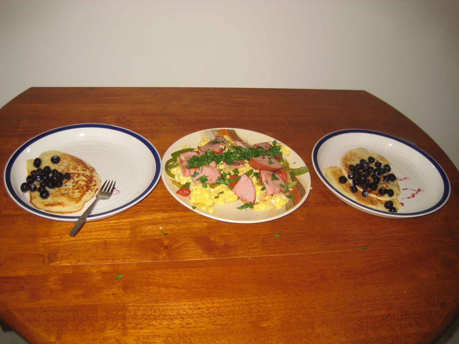 Pipérade; pancakes with blueberries