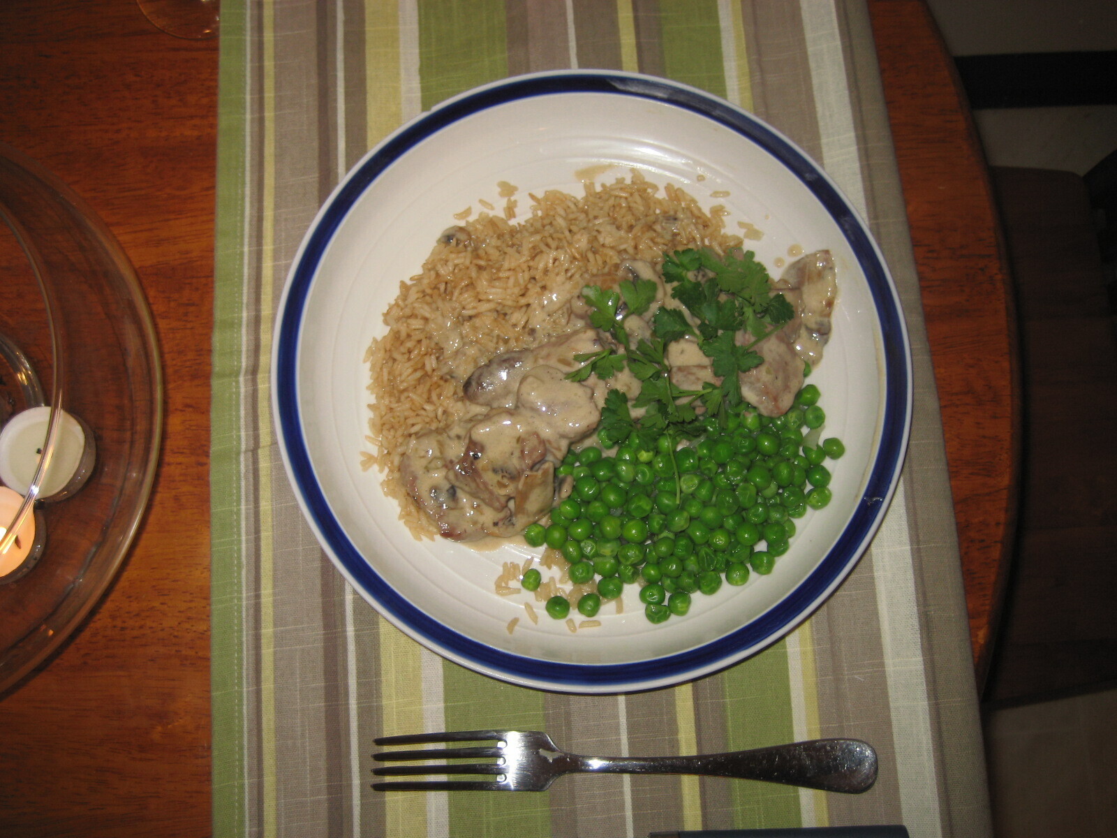 Sauteed beef à la parisienne with peas and risotto