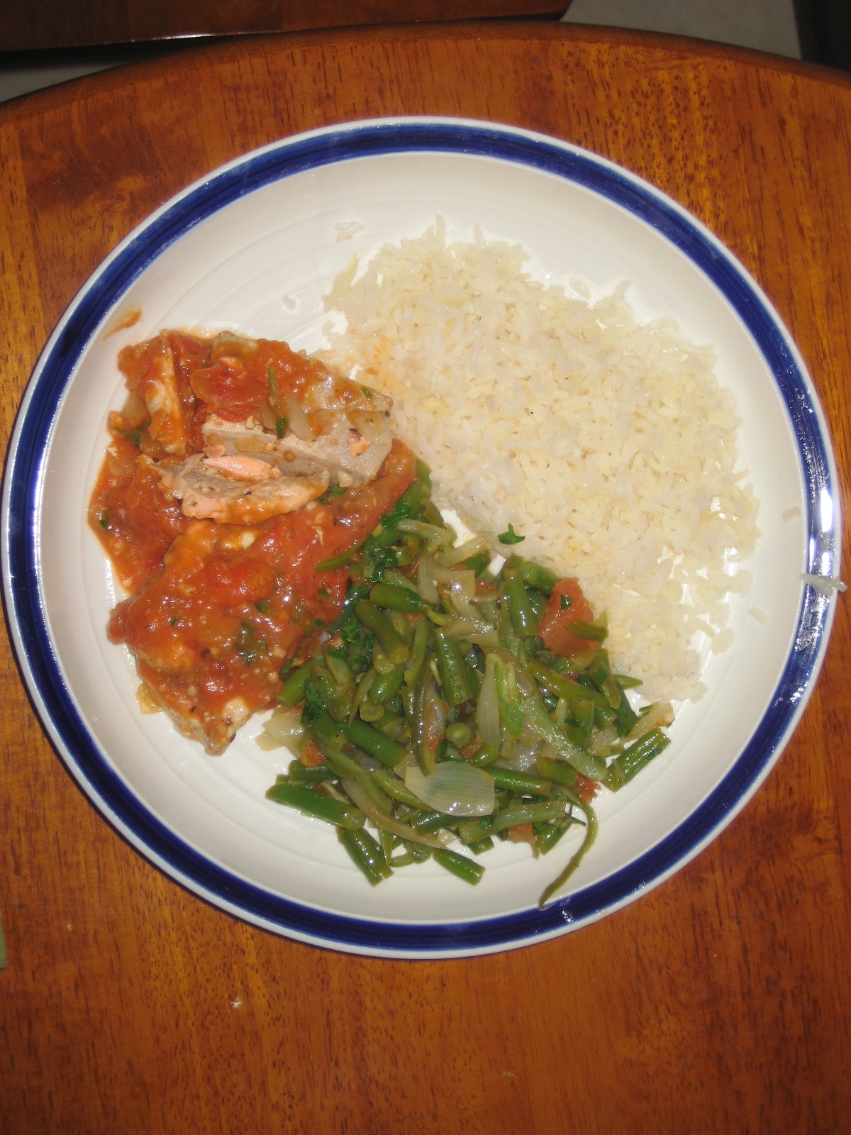 Swordfish and tuna steaks with green beans à la provençal and white wine risotto