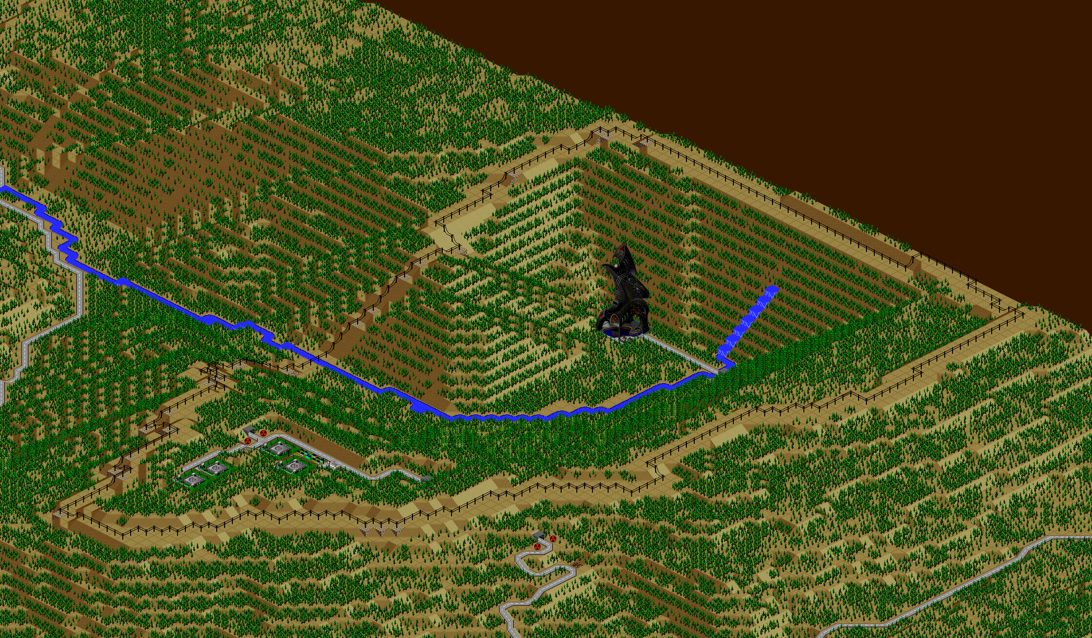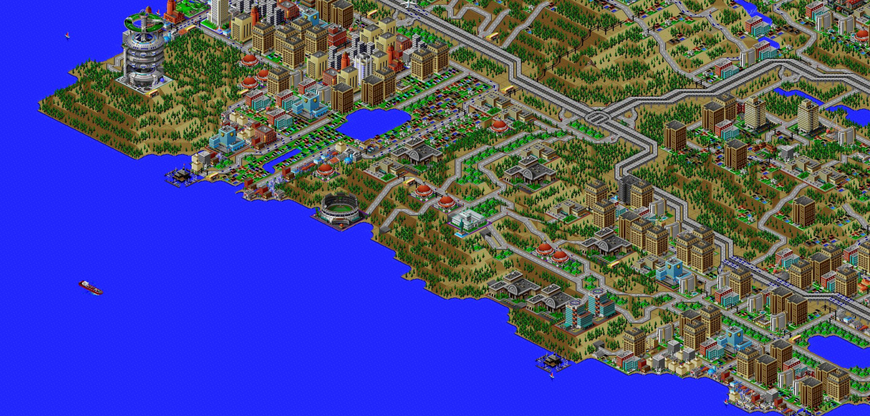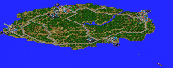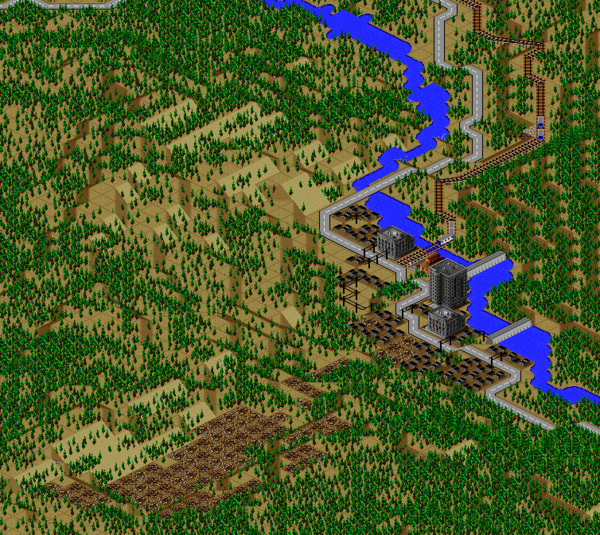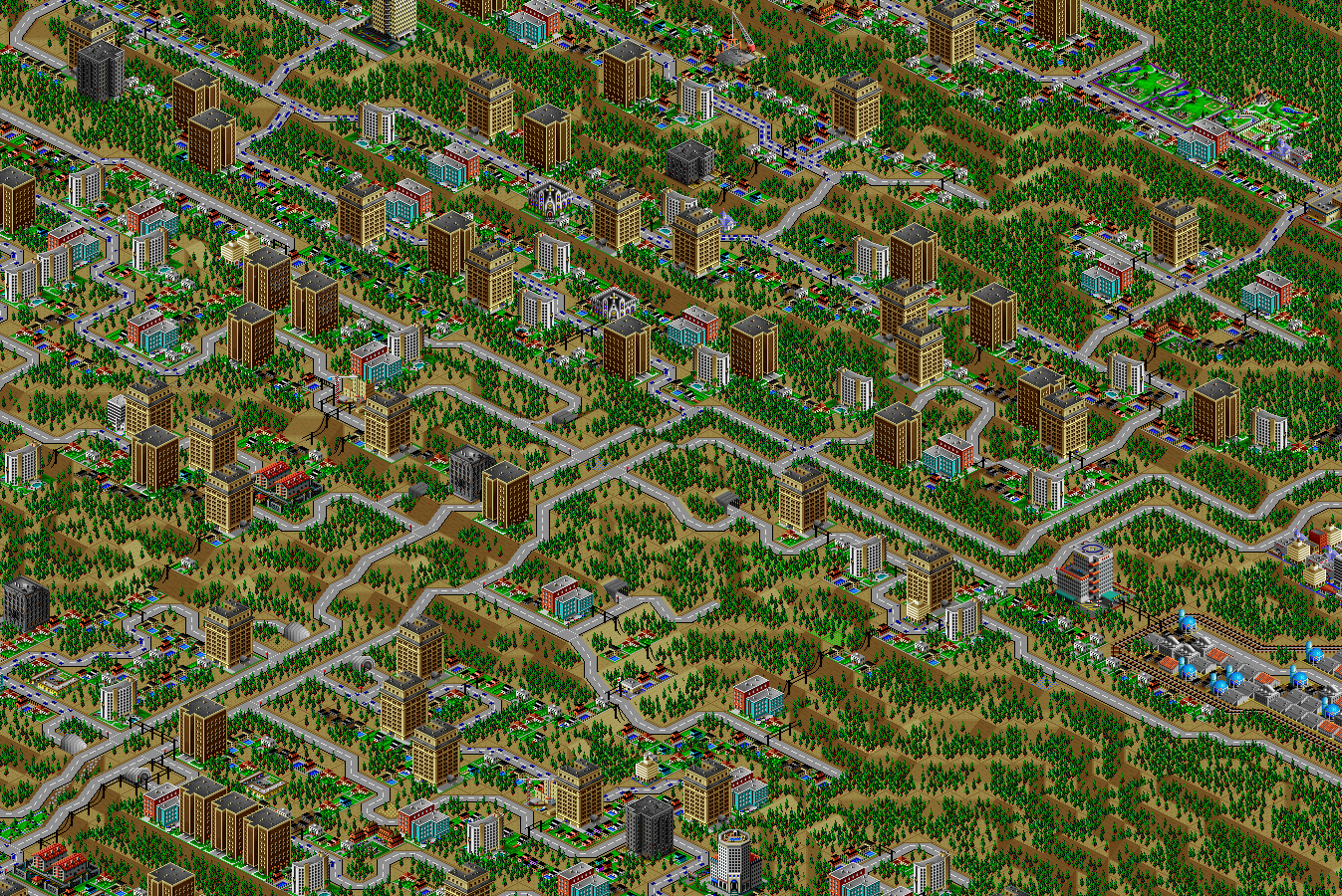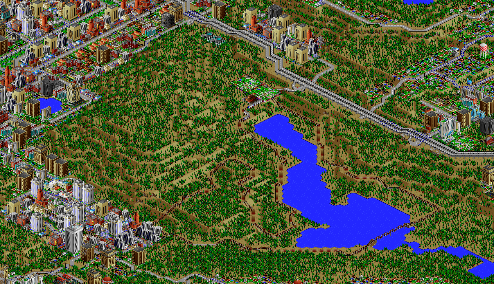 SimCity 2000 doesn't allow you to transfer power between cities, and so I've done some "cheating" with hydro plants (see Simulator Tricks for more detail), but I've made sure that there are enough "real" power plants to provide electricity to all 81 cities in the set, and mega-plants like this are a key part.