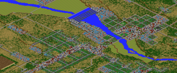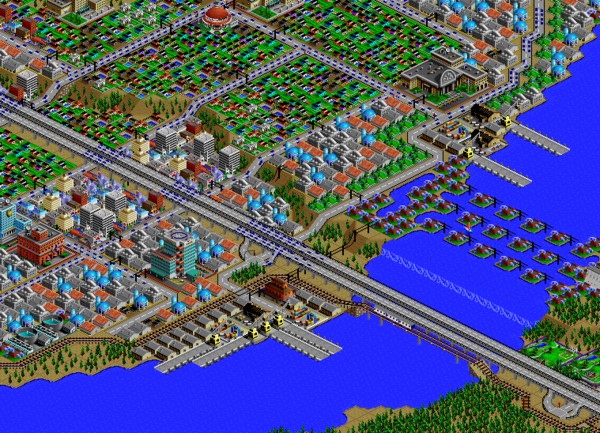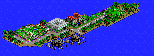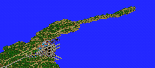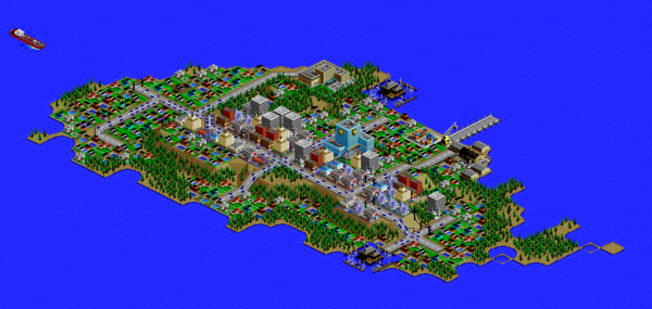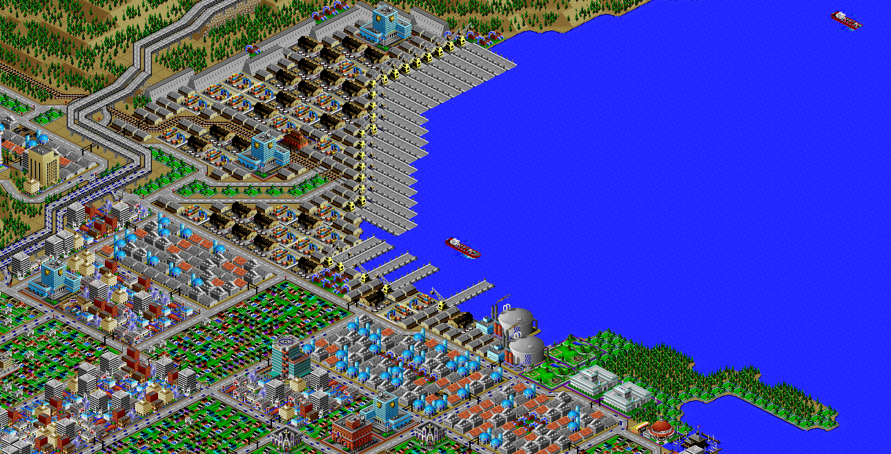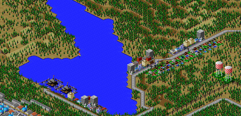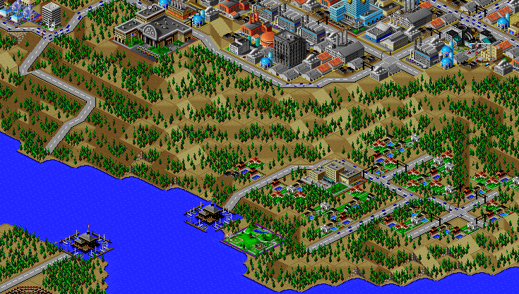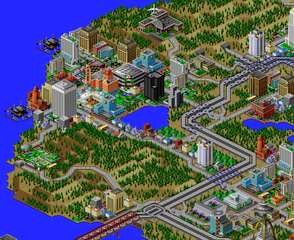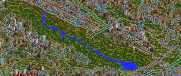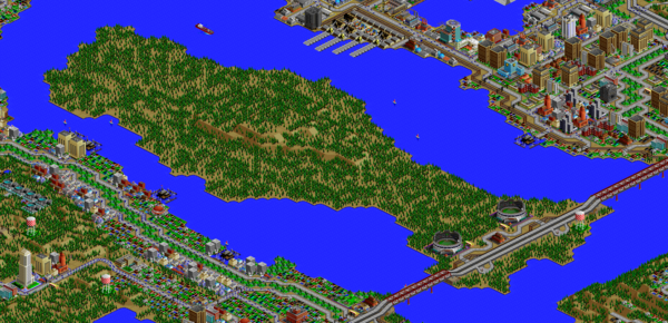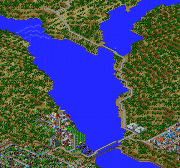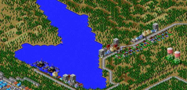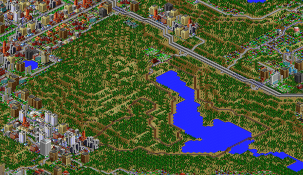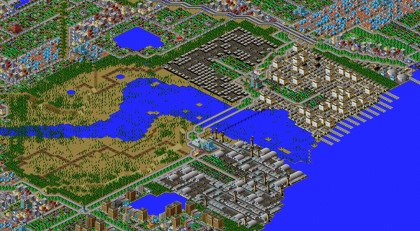 SimCity 2000 does not model waste disposal in cities, so I created two landfills in Port Washington, one here, and one south of the city.